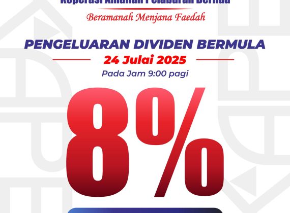 Pengumuman Penting kepada Semua Anggota KAPB! Kami dengan sukacitanya memaklumkan bahawa dividen bagi tahun kewangan 2024 adalah sebanyak 8%. Pengeluaran dividen akan