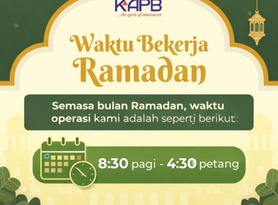 KAPB ingin memaklumkan bahawa waktu operasi bagi bulan Ramadan adalah dari 8:30 pagi hingga 4:30 petang. Semua urusan perkhidmatan dan pentadbiran akan