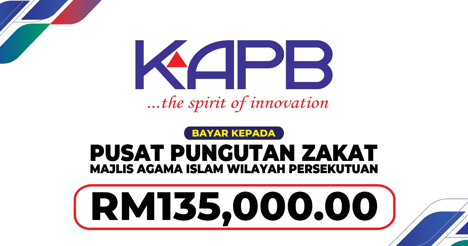 KAPB Chairman, Tan Sri Dato Dr Haji Abdul Aziz, delivering KAPB zakat to Pusat Pungutan Zakat Wilayah Persekutuan.